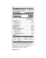 Our beef protein comes from EU-sourced, grass-fed, grass-finished cattle raised without growth hormones. Fewer inputs. Cleaner protein. 1 Ingredient. No artificial anything.